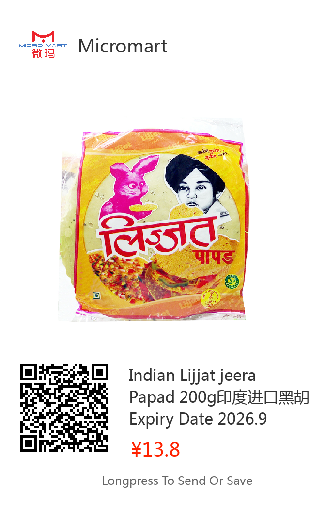Indian Lijjat jeera Papad 200g印度进口黑胡椒豆饼 Expiry Date 2026.9
